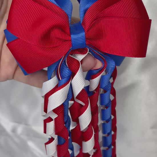Red, Blue & White Ribbon Hair Bow with Curls